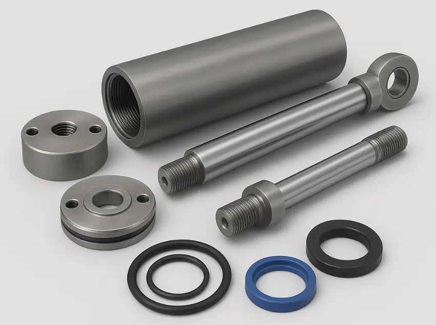 Cylinder hydrauliczny jest kluczowym siłownikiem w układzie hydraulicznym, a jego normalne działanie jest nierozerwalnie związane z współpracą wielu części rdzeniowych. Części cylindrów hydraulicznych obejmują lufę cylindrową, tłok, pręt tłokowy, pokrywę końcową, uszczelnienie itp. Każda część ma określoną funkcję, taką jak lufa cylindra służy do noszenia ciśnienia, tłok przekształca energię hydrauliczną w siłę mechaniczną, a uszczelka zapobiega wyciekom cieczy w celu zapewnienia stabilnego działania układu. Chociaż struktura jest prosta, każdy komponent bezpośrednio wpływa na dokładność wyjściową i żywotność urządzenia.